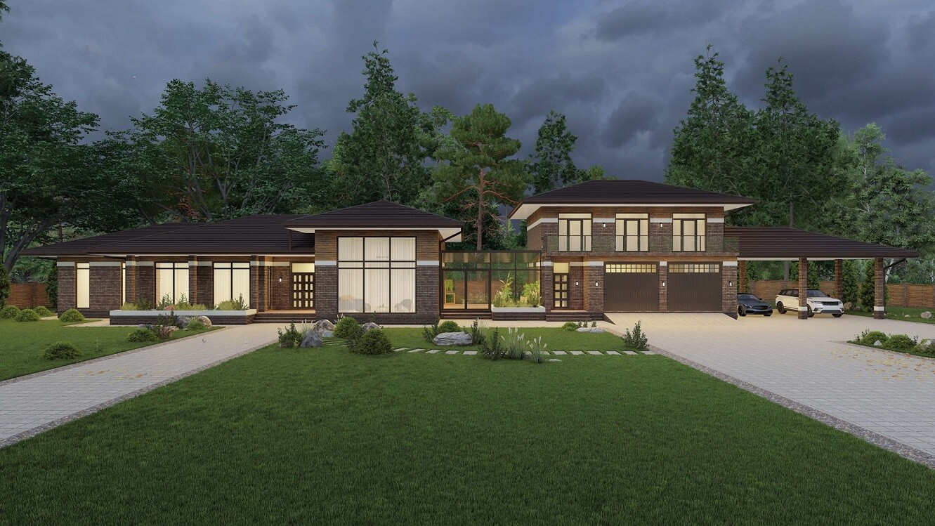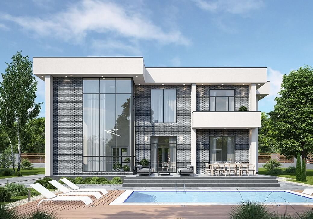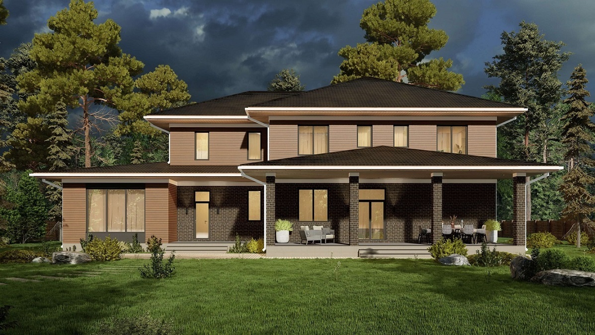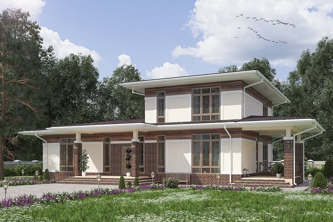Если дом двухэтажный, то крыша террасы (при наличии) имеет с крышей дома единый стиль.