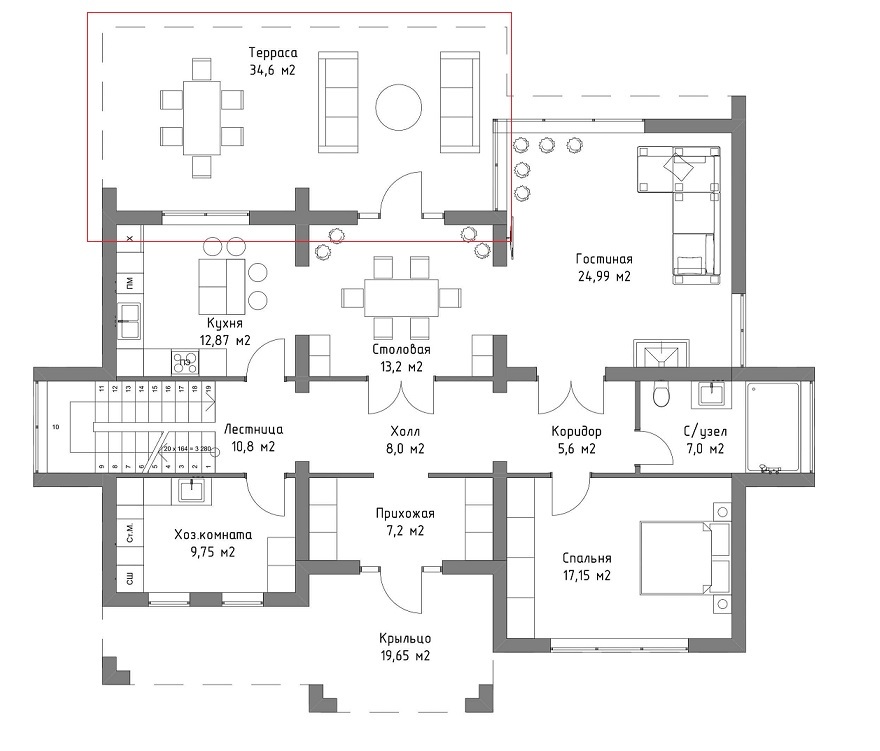 В большинстве случаев самый популярный стандартный вариант — это терраса для отдыха всей семьи и приема гостей.