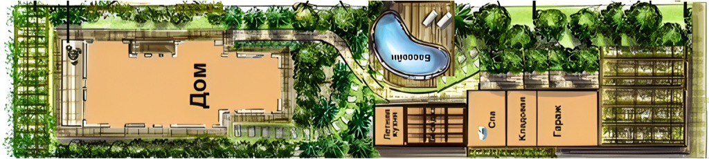 Но если дом, на участке будет стоять узкой стороной, так как по-другому ширина участка не позволяет его разместить.