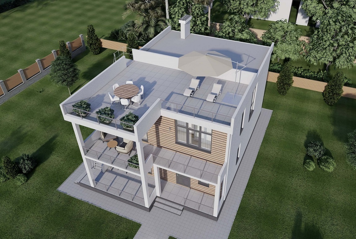 Еще один минус, который я уже упоминала выше. Такая терраса и конструктивно и юридически является частью дома, входит в его площадь и соответственно влияет на его кадастровую стоимость и на налог, который вы за этот дом будете платить, а также на нормативные отступы, которые при размещении дома нужно будет соблюдать.