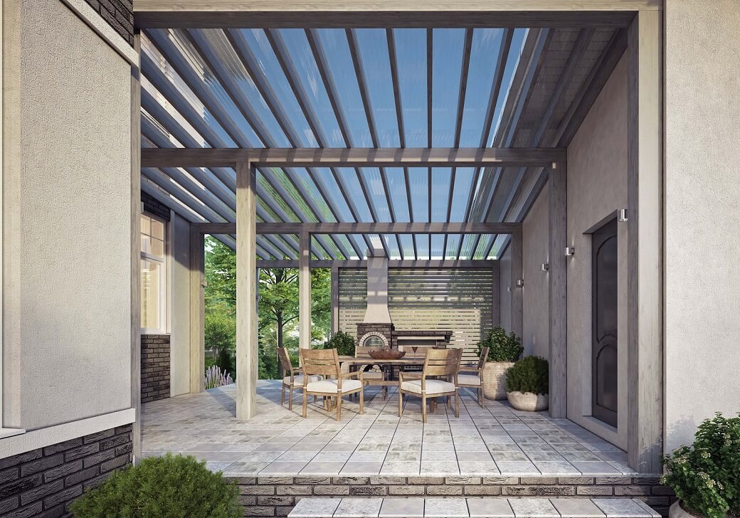 3) Прозрачная крыша у террасы, пергольный вариант.