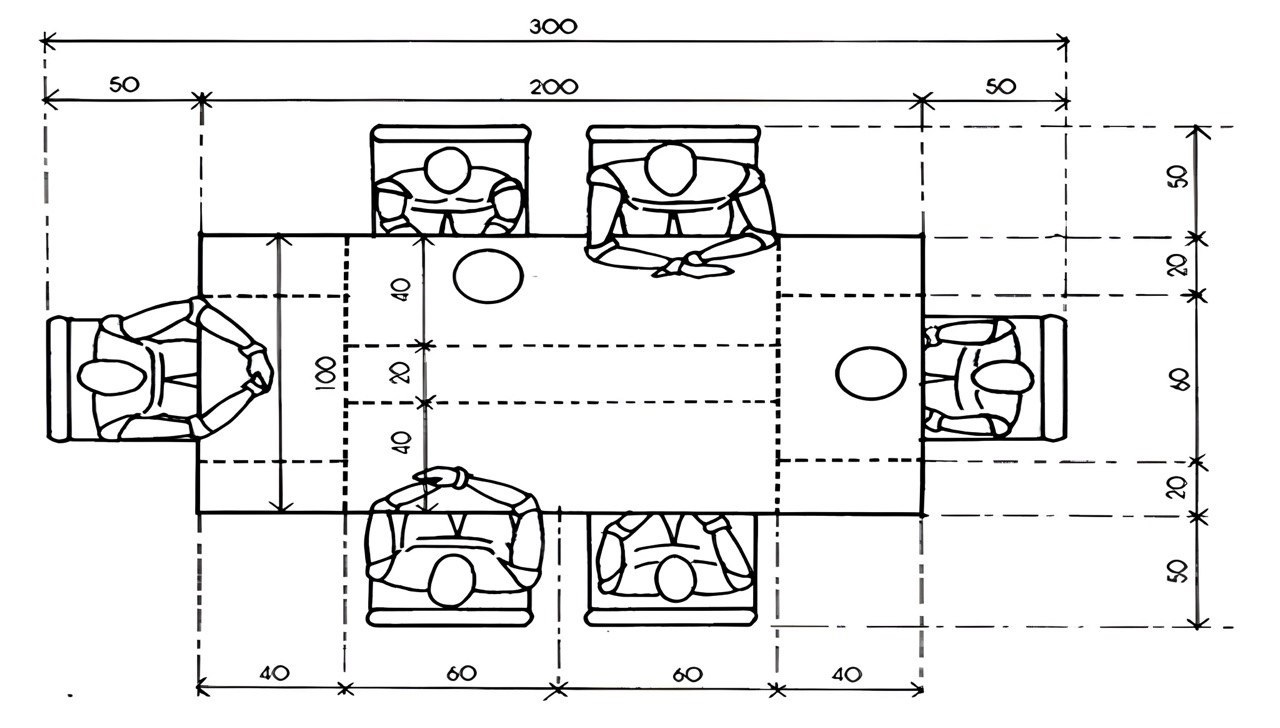 Если у вас на террасе будет классический обеденный стол, то ориентируемся на комфортные размеры для самого стола, пространство для стульев вокруг него (+ 50 см к размеру стола) и свободное расстояние, которое необходимо, чтобы вокруг стола со стульями можно было пройти (ещё + 50−70 см с каждой стороны).