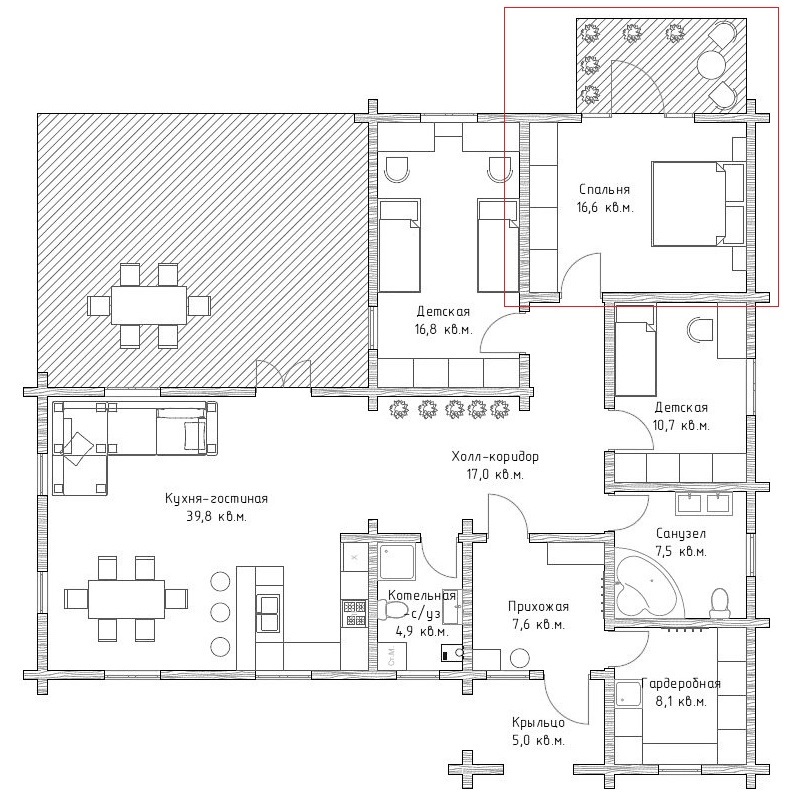Но другое дело, когда участок маленький, узкий или сложной формы — в таком случае наличие подобного запроса по террасе начинает себе планировку подчинять. Так вот не стоит наличию террасы в доме в жертву удобство планировки приносить. Удобная планировка дома всегда важней, вам с ней каждый день жить. А лето для террасы у нас не круглый год.
